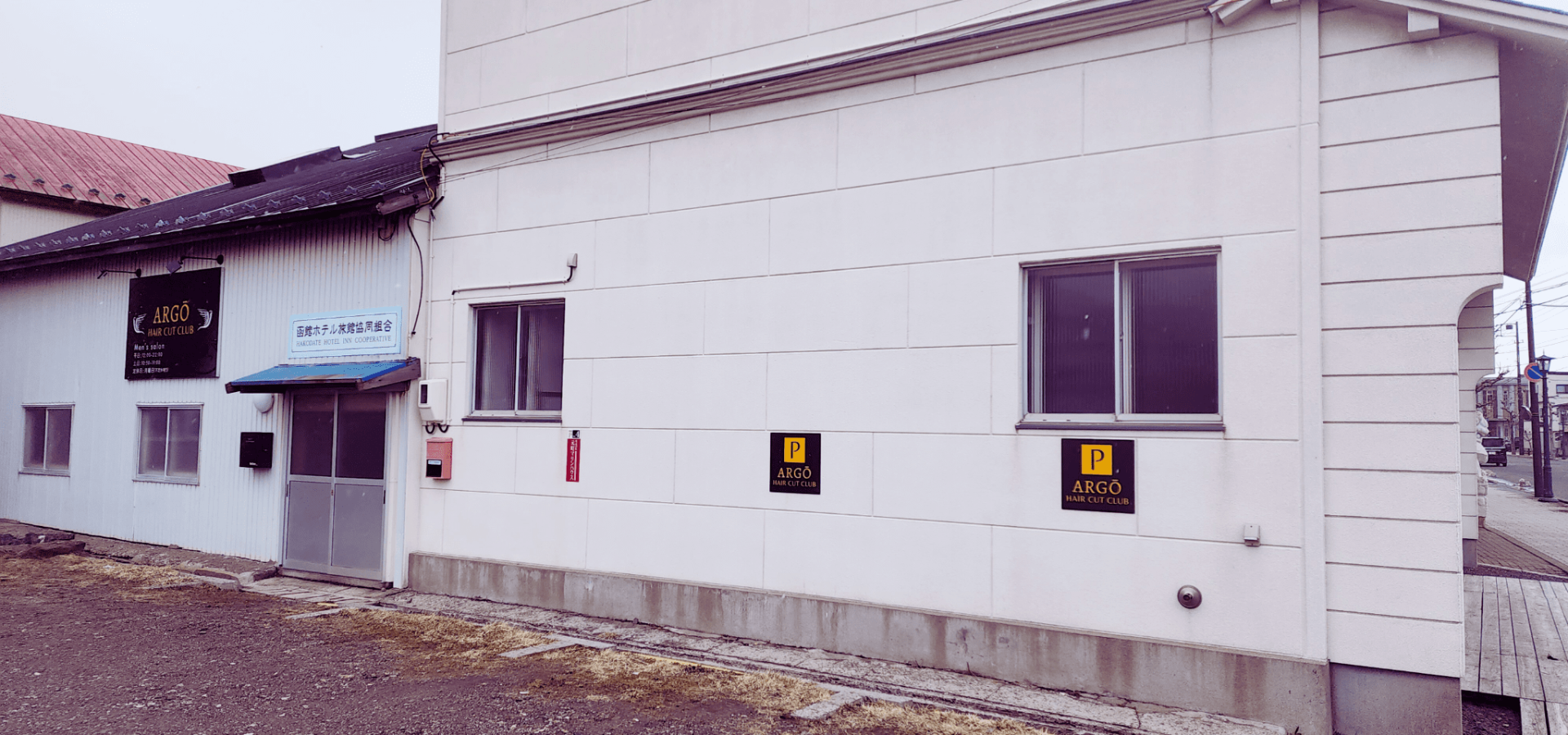 函館の中でもおしゃれな建物が立ち並ぶ赤レンガ倉庫群。Argō hair cut club(アルゴヘアーカットクラブ) はそのすぐ近くにございます。緑の島の正面までくればすぐにわかります。